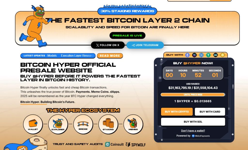 Bitcoin Hyper ($HYPER) is bringing a new phase to the BTC ecosystem. While BTC remains the gold standard for security, Bitcoin Hyper adds what it always lacked: Solana-level speed. The result: lightning-fast, low-cost smart contracts, decentralized apps, and even meme coin creation, all secured by Bitcoin.